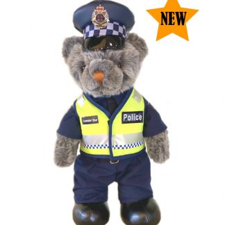 The 2010 limited edition Constable T. Bear is assigned to the Victoria Police Dog Squad and of course he has a partner – a labrador police puppy ‘in training’ that is included in the price. Once again Constable T. Bear features our unique grey-silver plush, stands 38cm in height and is dressed in an authentic uniform of the Victoria Police Dog Squad including navy trousers, shirt, baseball cap, utility belt, black boots and Victoria Police patches. Each bear comes with a numbered certificate of authenticity and is presented in a gift box featuring images of the Dog Squad in action and a history of the unit. You can order on line now.