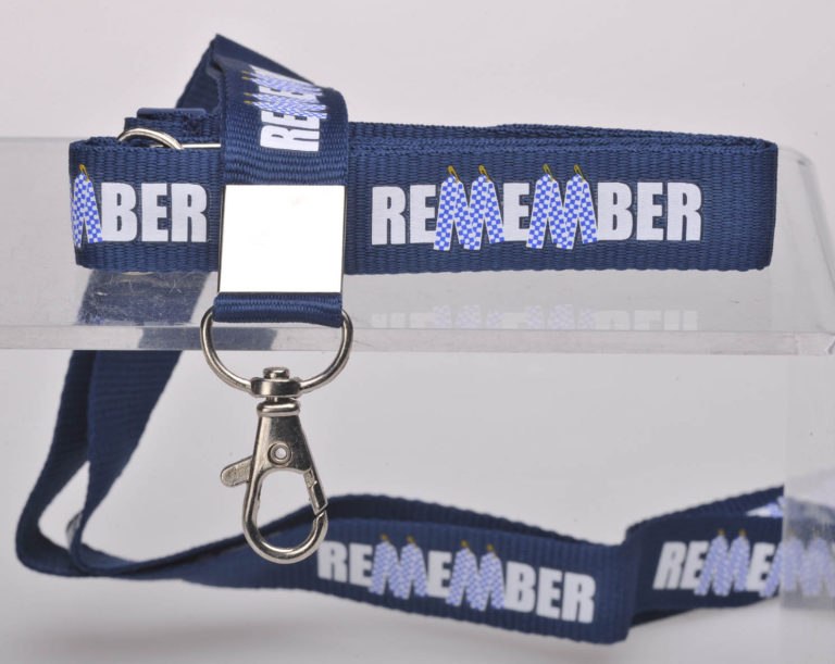 Navy lanyard featuring the Foundation’s new Remember logo. Safety release included.