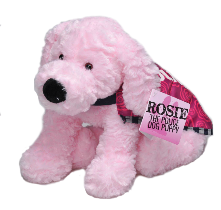 ROSIE the Police Dog Puppy is an adorable companion and also wants to grow into a fully grown member of the Police Dog Squad. 35cm length, finished in super-soft plush and fully washable. ROSIE was developed in honour of Constable Angela Rose Taylor and her favorite colour was pink.